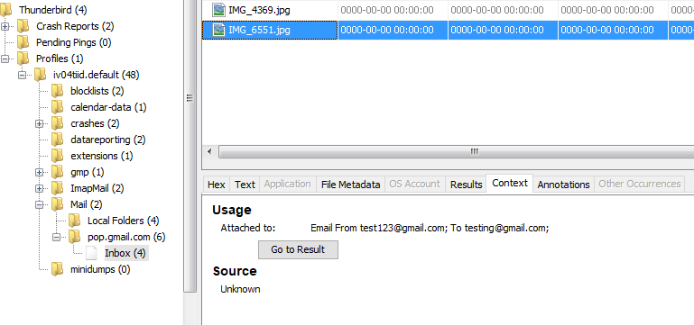 The Context tab shows information on where a file came from and allows you to navigate to the original result. For example, it can show the the URL for downloaded files and the email message a file was attached to. In the image below you can see the context for an image that was sent as an email attachment.