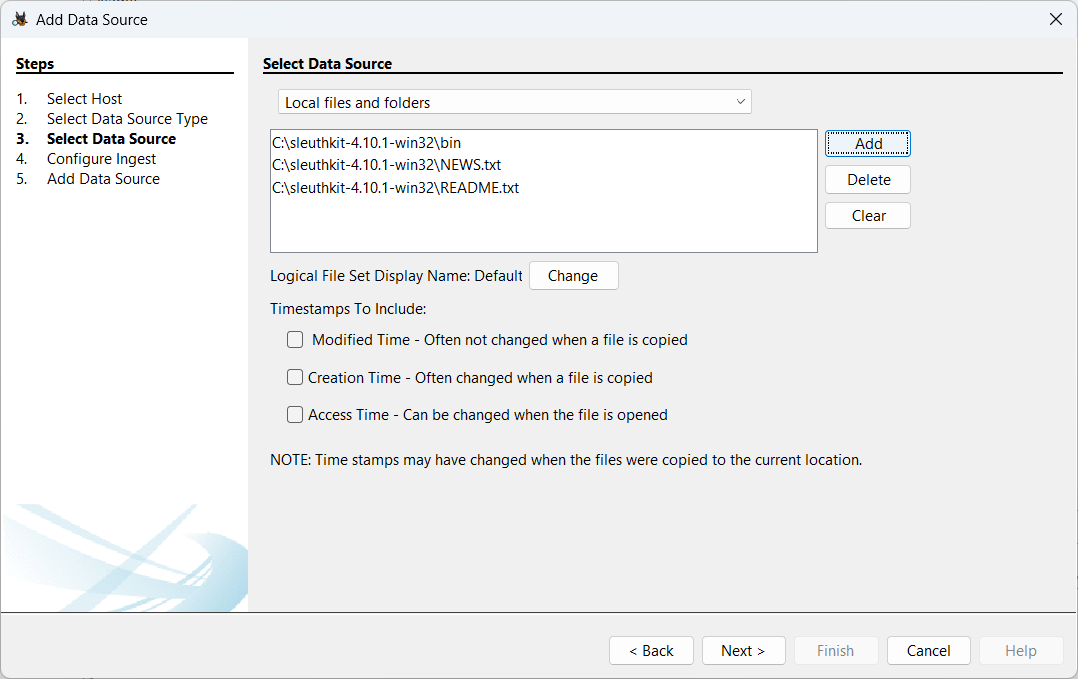 Note that if you are analyzing a local disk that is being updated, then Autopsy will not see files that are added after you add it as a data source.