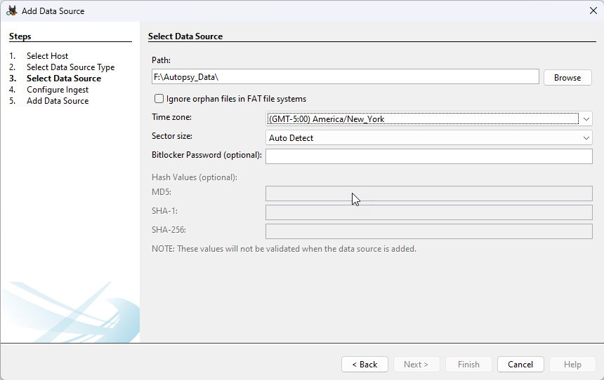 NOTE: If you are adding a data source to a multi-user case, ensure that all Autopsy clients will have access to the data source at the same path. We recommend using UNC paths to ensure this consistent mapping.