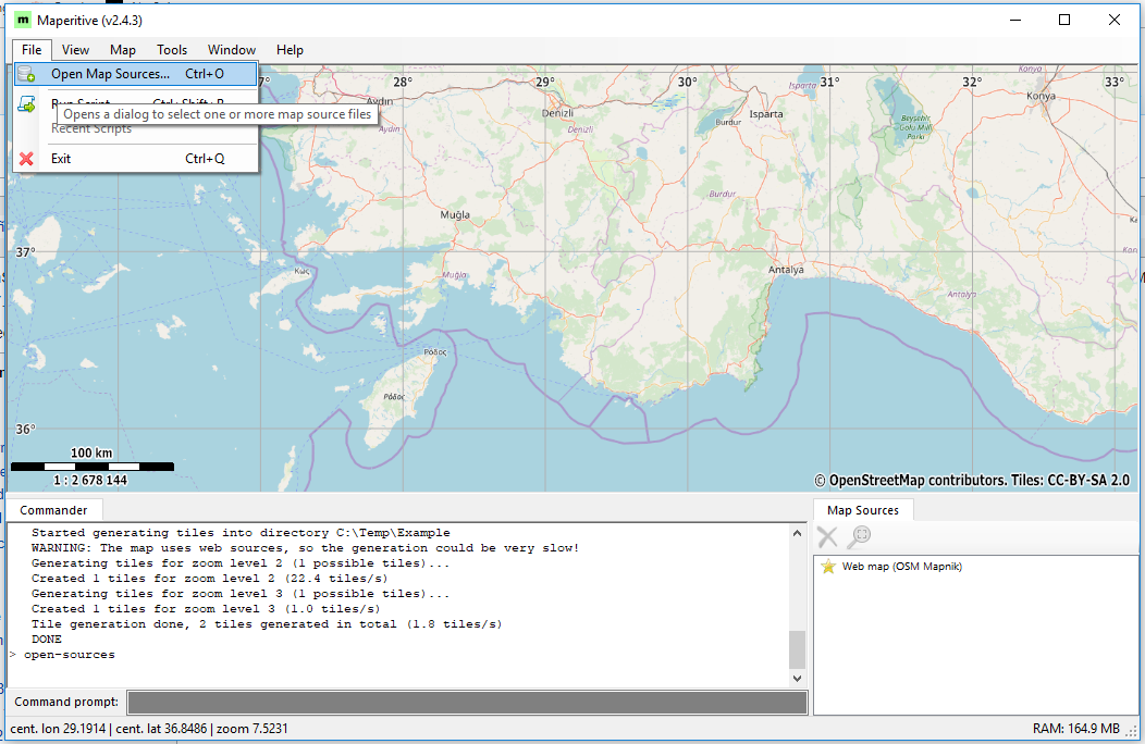 Select from the menu bar File->Open Map Source...