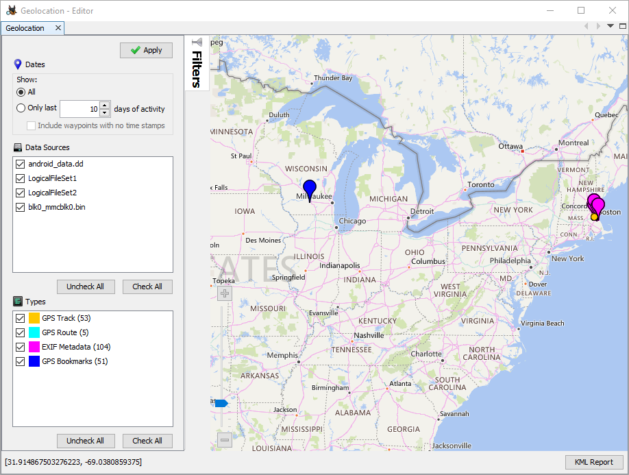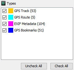 The second filter allows you to show waypoints only for the selected data sources. Note that only data sources that contain geolocation data are displayed here.