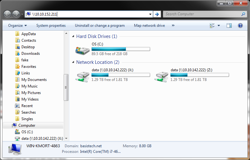 - Launch Windows Explorer and type the UNC path of the shared storage using the IP address, such as "\\10.10.152.211\Cases". Press Enter.
