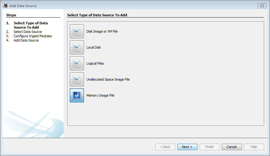 The Volatility data source processor runs Volatility on a memory image and saves the individual Volatility module results. If the disk image associated with the memory image is also available, it will create Interesting Item artifacts linking the Volatility results to files in the disk image.