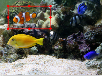 In order to resize or delete an image tag, you will need to first select it. You can do this by left clicking anywhere inside (or on) the image tag. Selected tags can be resized by dragging any of the 8 handles that appear. The resized dimensions will automatically be saved when the mouse is released.