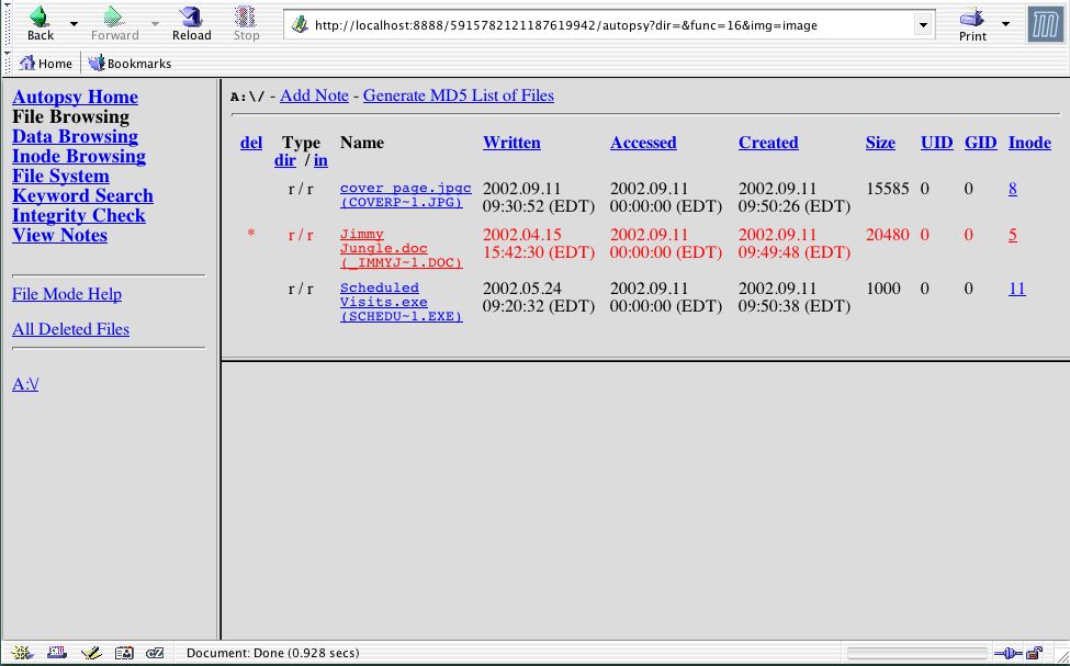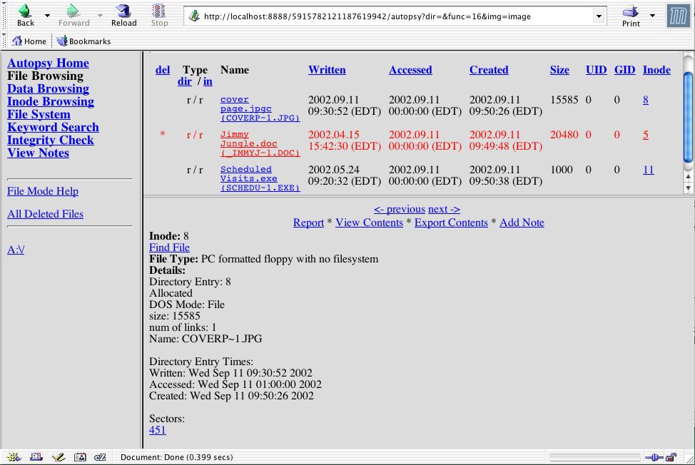5. The process used to recover the data is shown above using TASK and Autopsy.