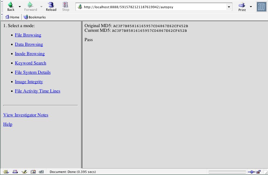 The MD5 value of image was then placed in md5.txt so that we could verify its integrity through Autopsy. The md5.txt file had the following contents: